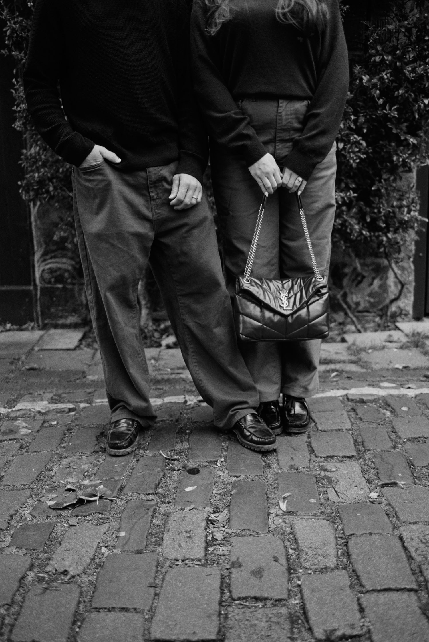 For Sara and Brandon’s shoot, we started at the Vennel for the views of the Edinburgh Castle, then walked to the Dean Village and ended up on Circus Lane, the most charming lane in Edinburgh. The way 35mm film rendered autumnal colours and textures on that foggy, overcast day, was nothing short of magical.