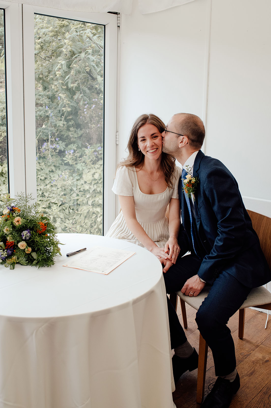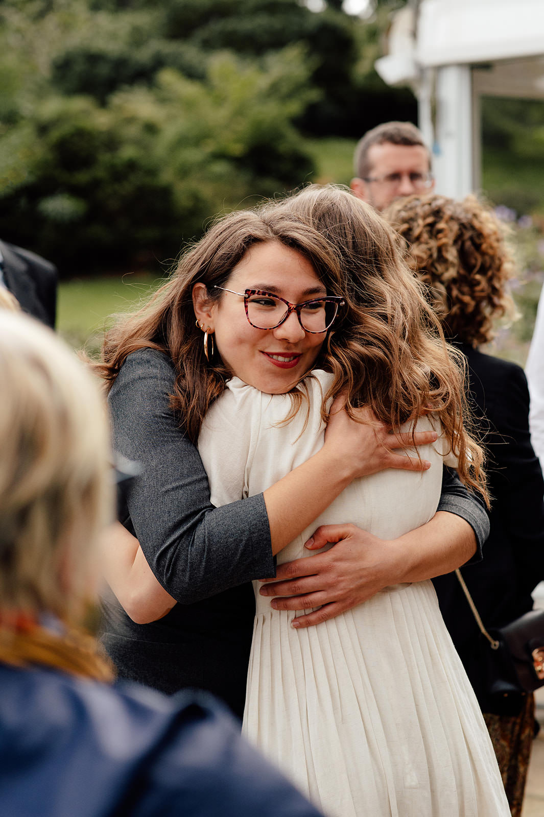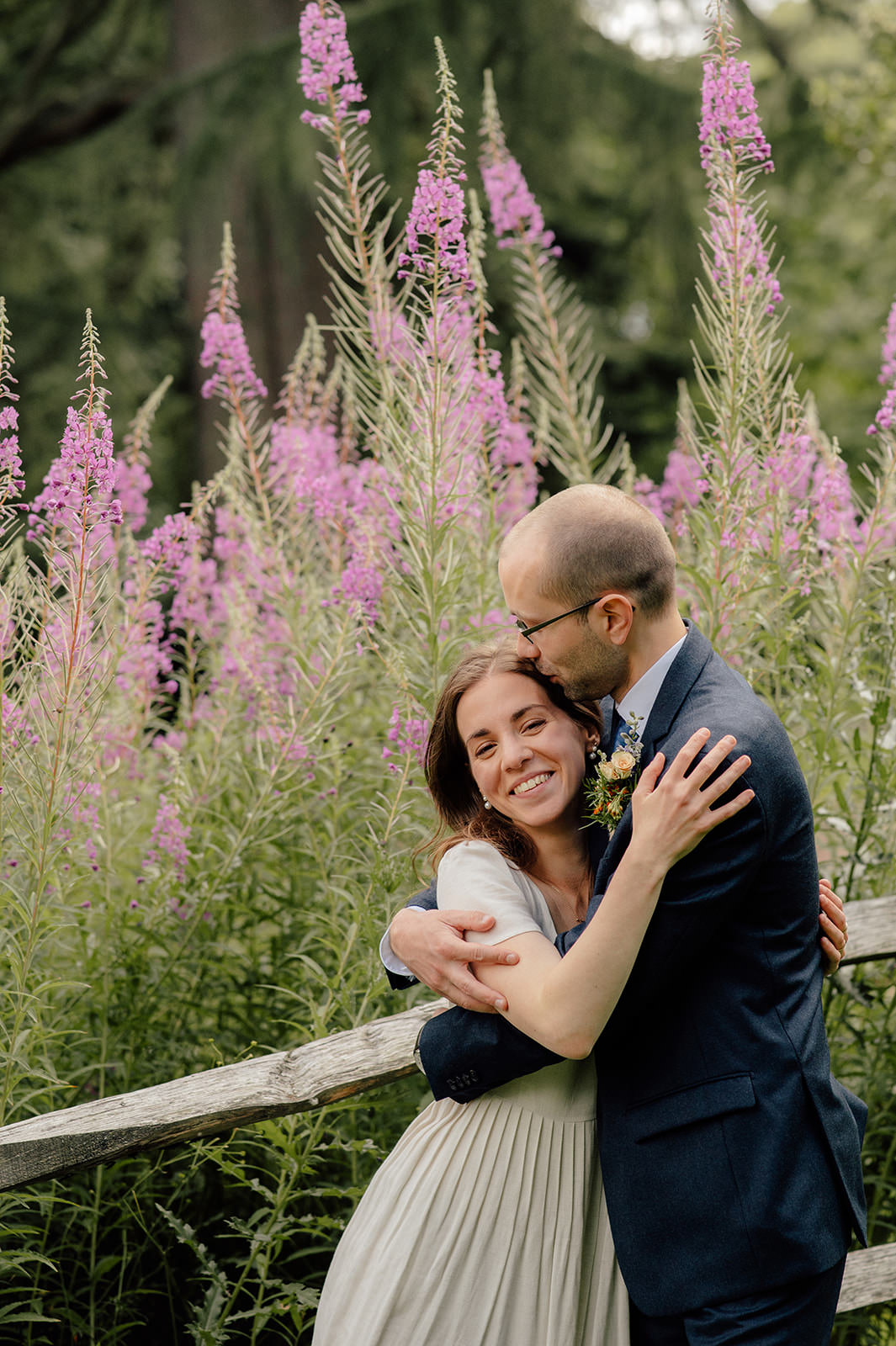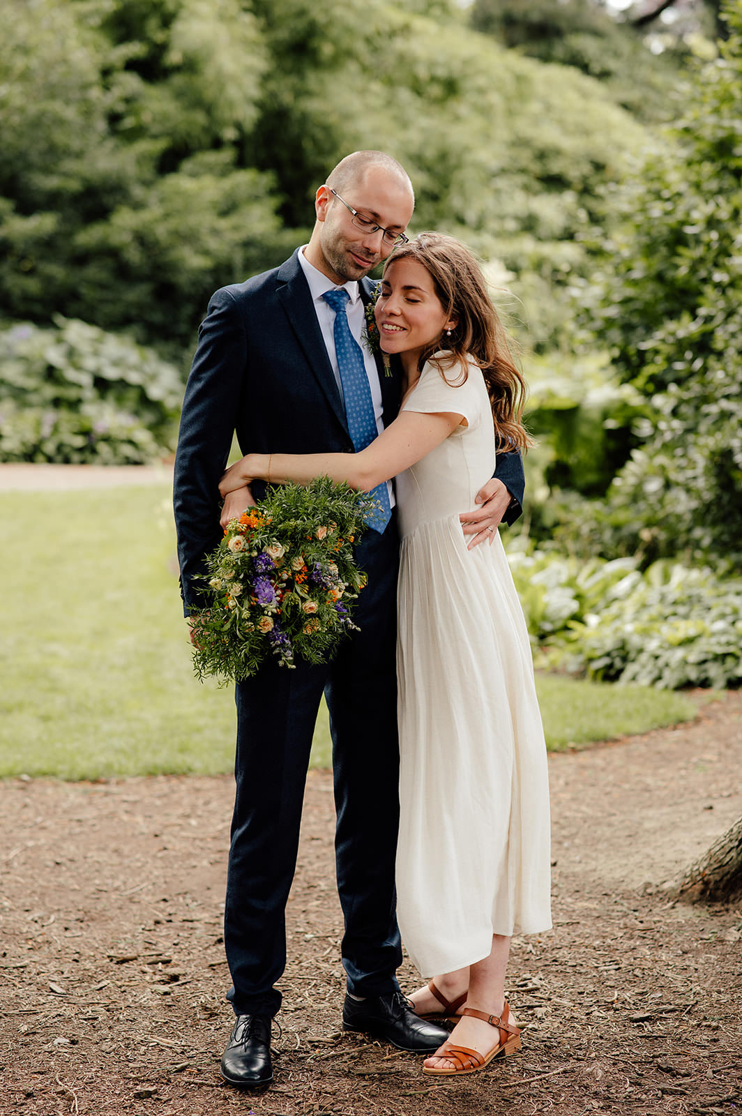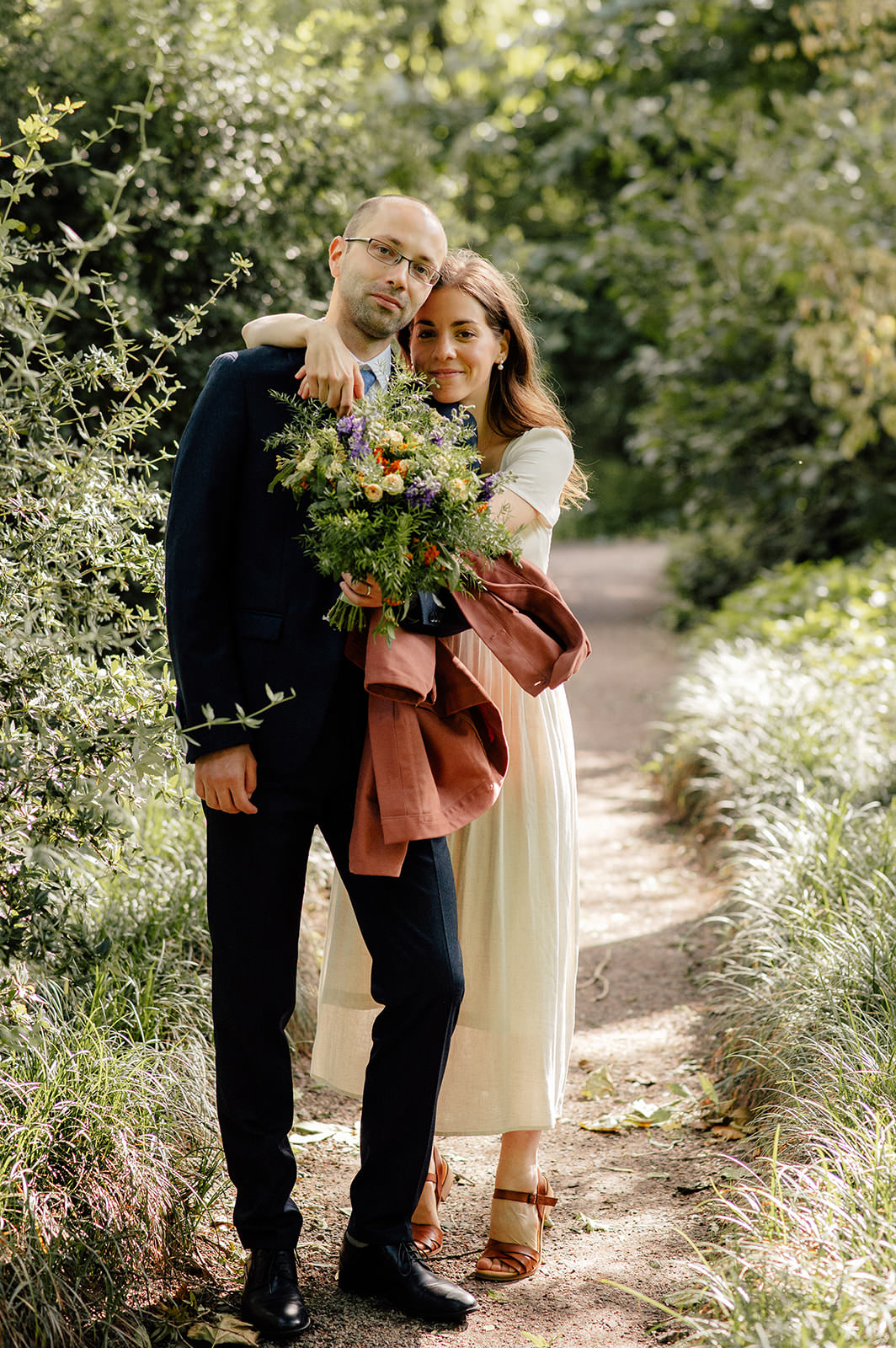 I’ve photographed many Autumn weddings at the Gardens before – I really love John Muir Grove for outdoor ceremonies! That day we had extremely strong winds so the ceremony was moved indoors to a little marquee next to the Caledonian Hall. After the ceremony, the wind has calmed down a bit and everyone gathered for drinks reception outside the Caledonian Hall. The couple have booked a micro package for 3 hours of coverage which was enough to cover the ceremony, drinks reception and a few family photos along the couple photoshoot. We explored the gardens which I really appreciated as we found some wildflowers and more secluded spaces hidden from the public. We took the photos on both digital and 35mm film.