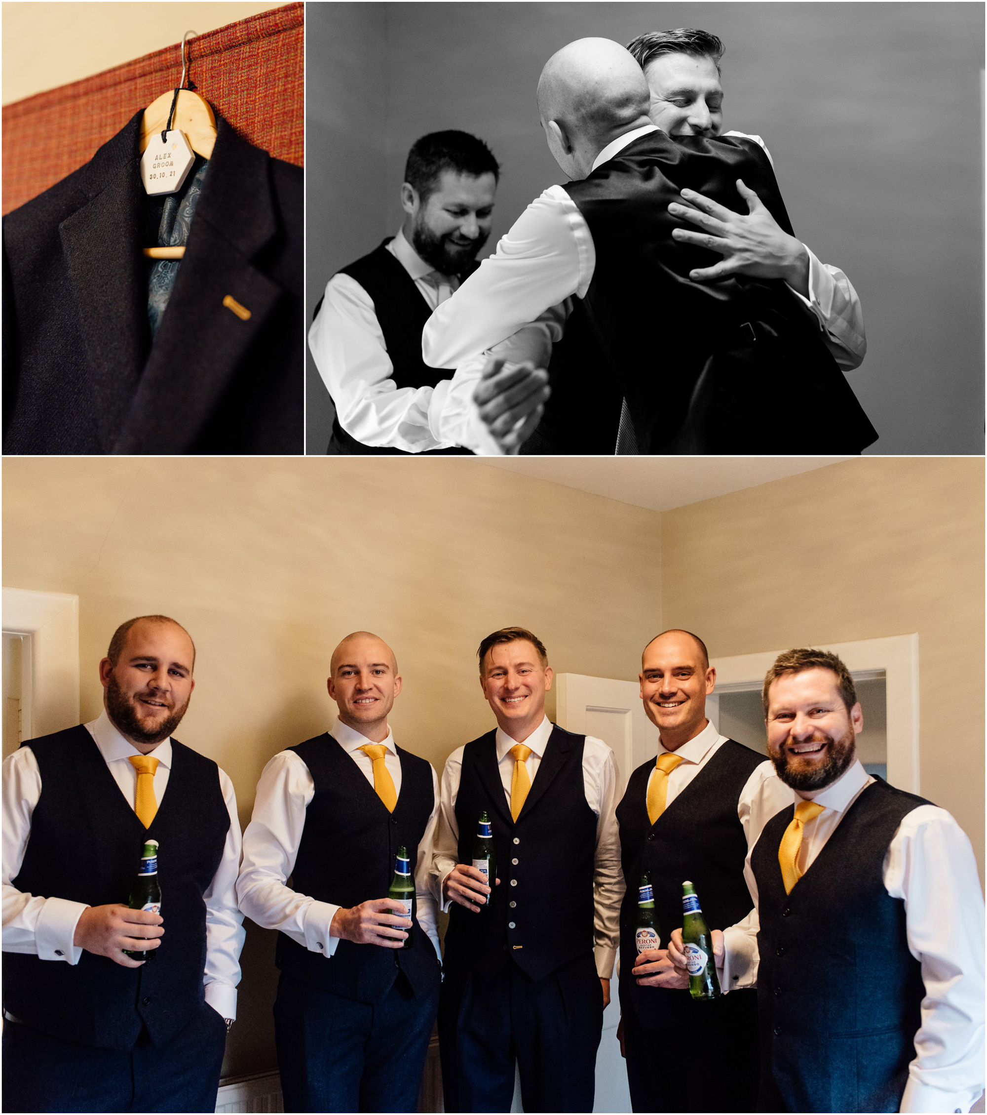 Ruth & Alex travelled from England to get married at Dunglass. The couple brought their two dogs for this destination wedding in Scotland. Ruth & the bridemaids were getting ready in a Seaview House, while Alex and his groomsmen stayed in the cottage. Ruth chose a 2 in 1 wedding dress from Halfpenny London with lovely sequined skirt.
