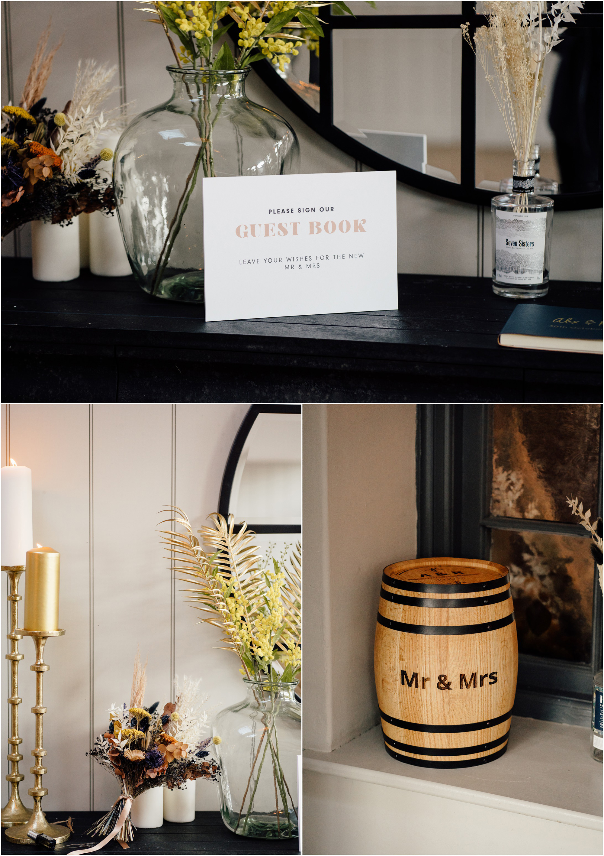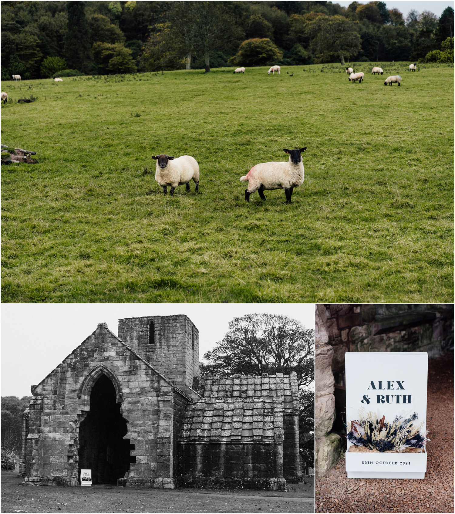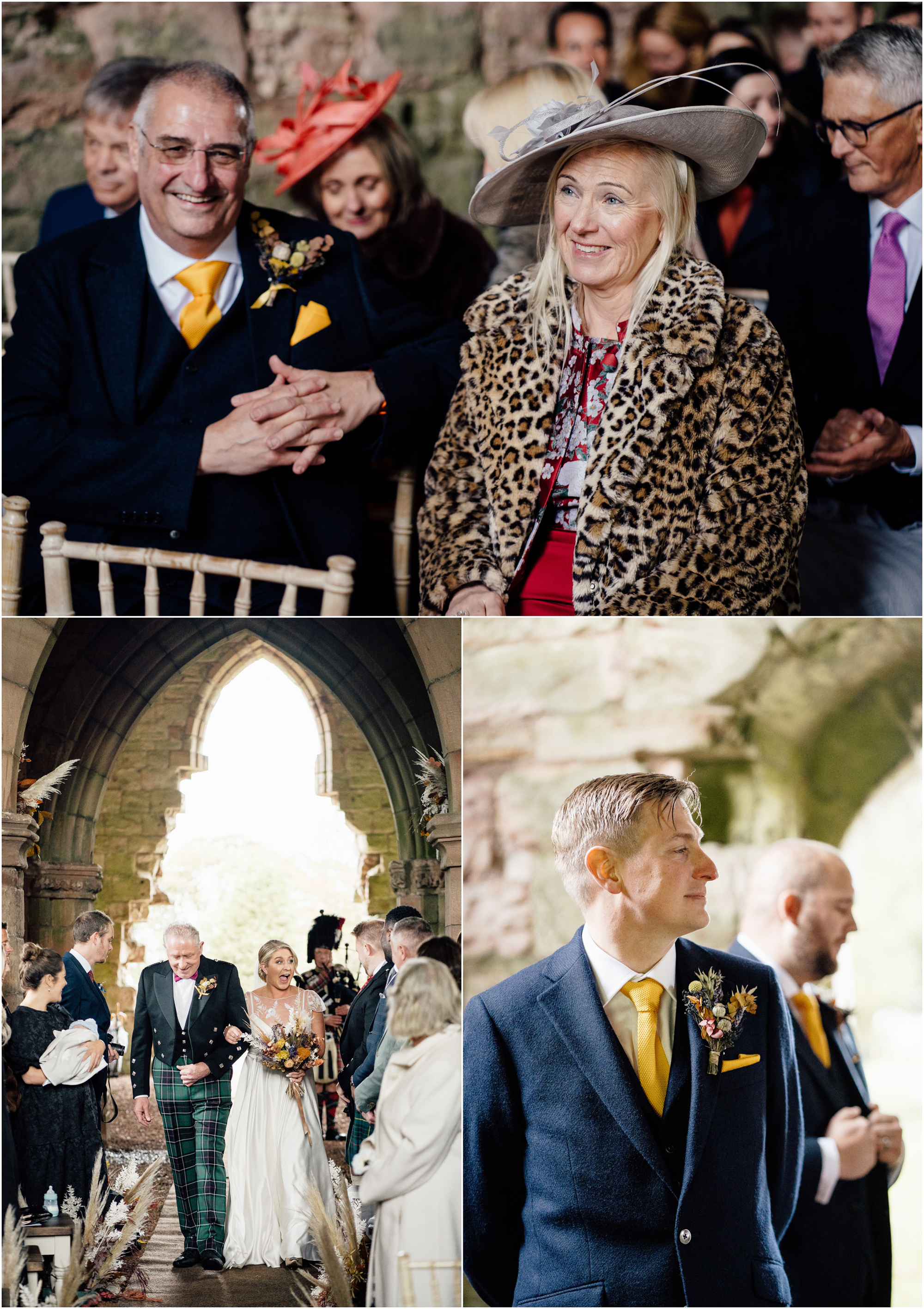 The ceremony took place in old collegiate church set on Dunglass Estate. It is a very unique church with lovely light. The couple said their vows in front of the arch decorated with dried flowers, wonderful work of Mud Urban Glasgow.